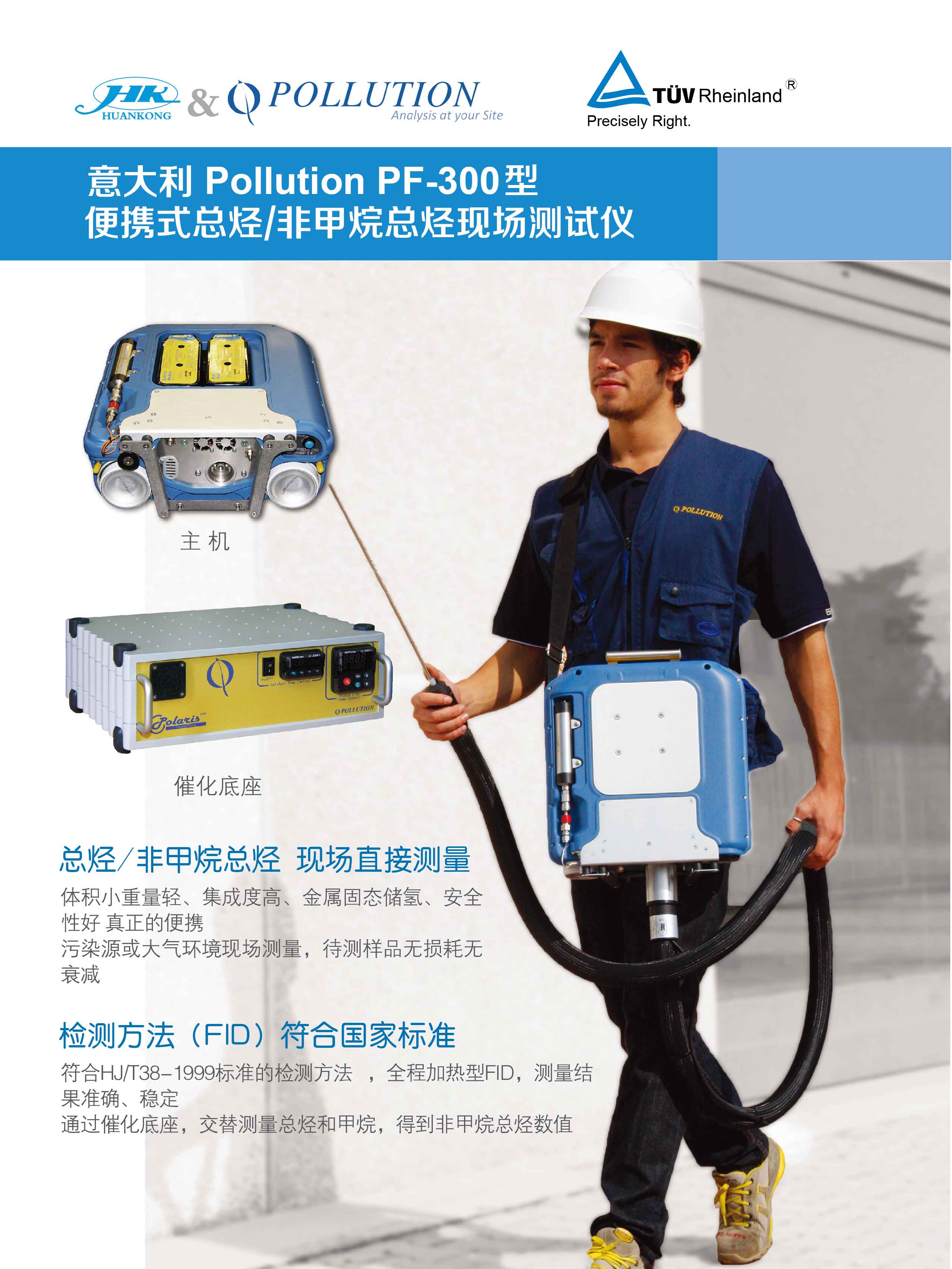 意大利Pollution公司生產(chǎn)的PF-300便攜式可揮發(fā)性有機(jī)物測試儀,采用符合EN13526、EN12619、EPA Method 25A、HJ/T38-1999標(biāo)準(zhǔn)的氫火焰離子化檢測器(FID)檢測技術(shù), 測量氣體中的總烴/非甲烷總烴,可廣泛用于固定污染源煙氣排放、熱反應(yīng)器和燃燒裝置排放、汽車尾氣排放、天然氣、環(huán)境空氣甚至包括醫(yī)療行業(yè)麻醉氣體的監(jiān)測等。PF-300測量非甲烷總烴除需要采用全程加熱FID技術(shù)的主機(jī)外,還配置高溫催化裝置。主機(jī)測得總烴值,配合高溫催化裝置測得甲烷值,兩者的差值即是非甲烷總烴數(shù)值。PF-300是一款真正意義上的輕便、緊湊、安全性好、使用方便的便攜式現(xiàn)場非甲烷總烴測試儀。