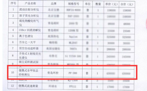 我司中標(biāo)便攜式非甲烷總烴檢測儀設(shè)備1套